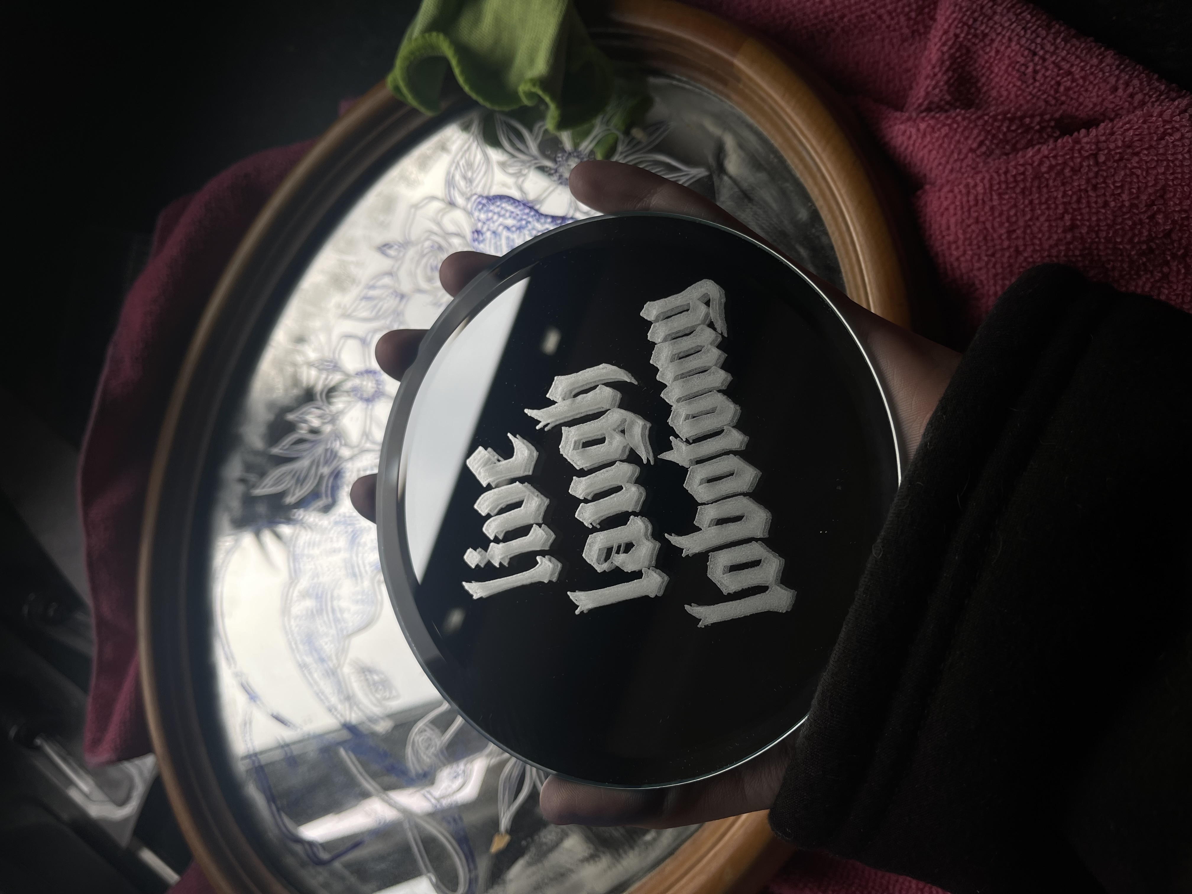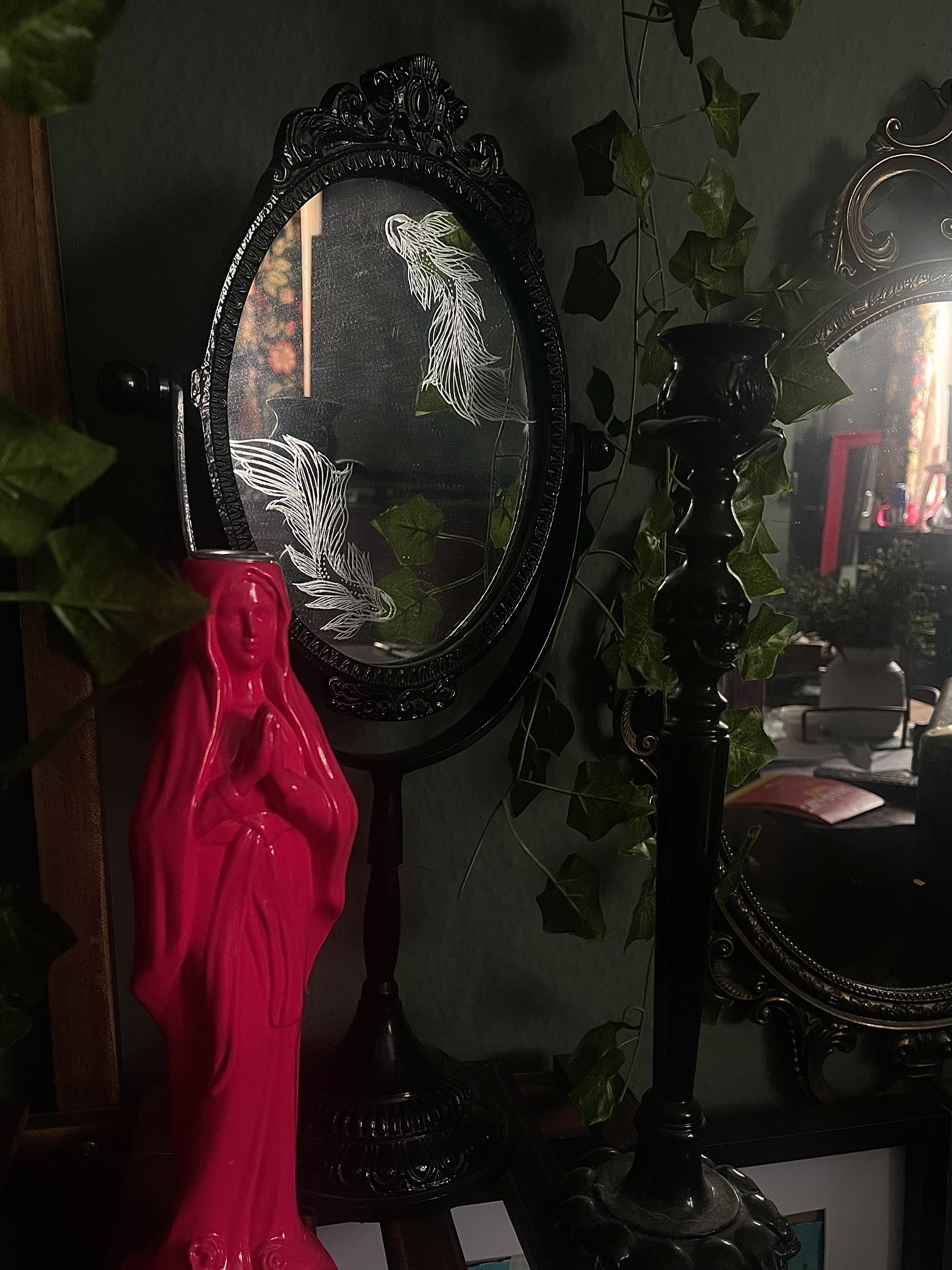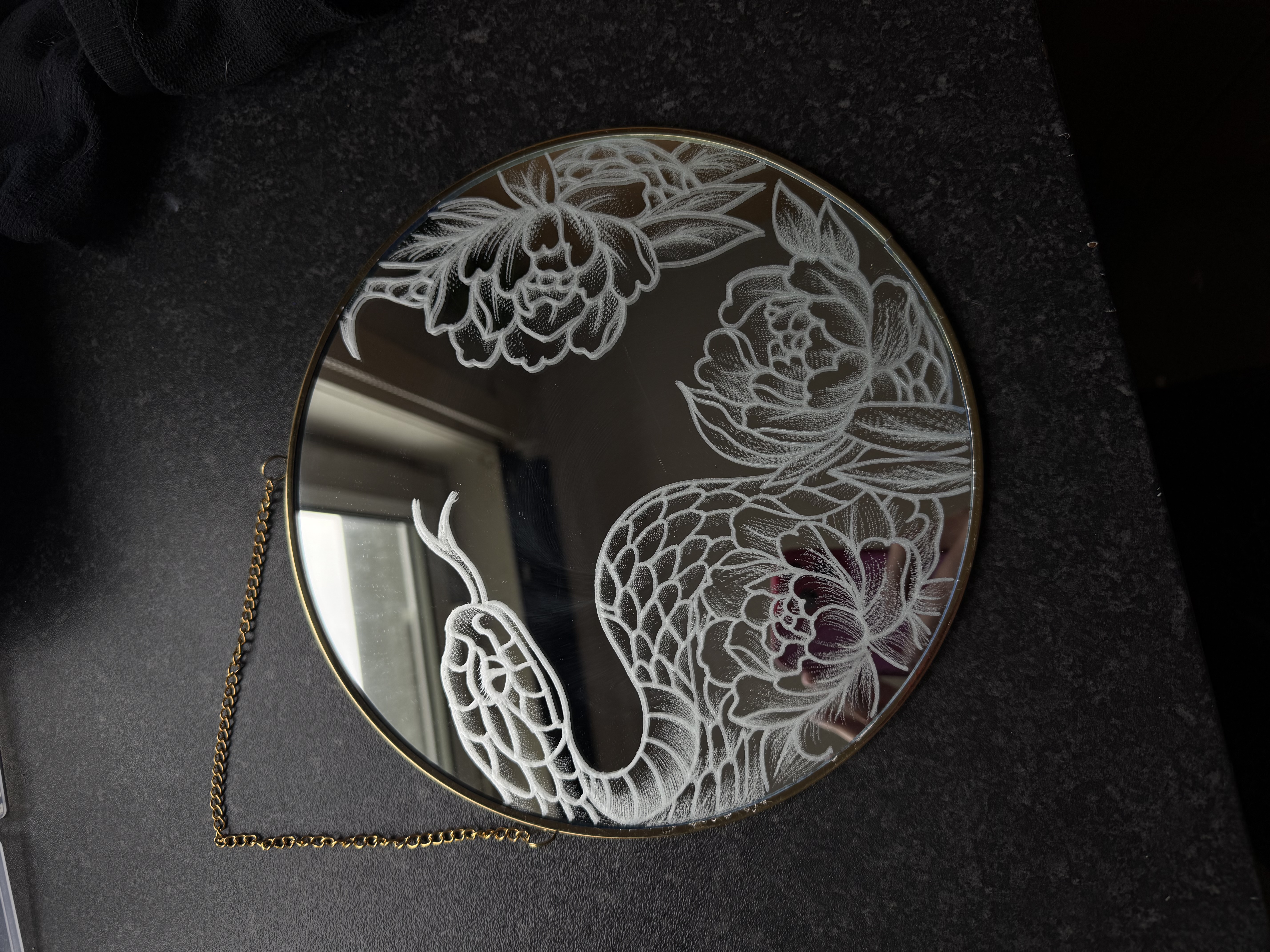 I engrave mirrors and homeware items made of glass/mirror